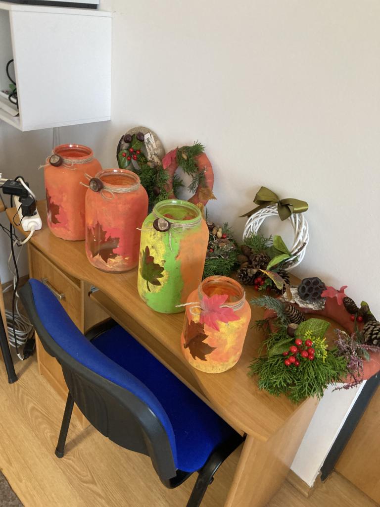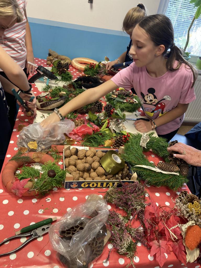 Vďaka deťom z Centra voľného času Beťárik a pani Vierke Kákošovej, sme vyrobili „dušičkové“ vence a lampáše, ktoré primátor nášho mesta Jaroslav Suchánek priviazal na brány cintorínov. Ostatné vence zavesia zamestnankyne CVČ a deti na pamätníky v meste.