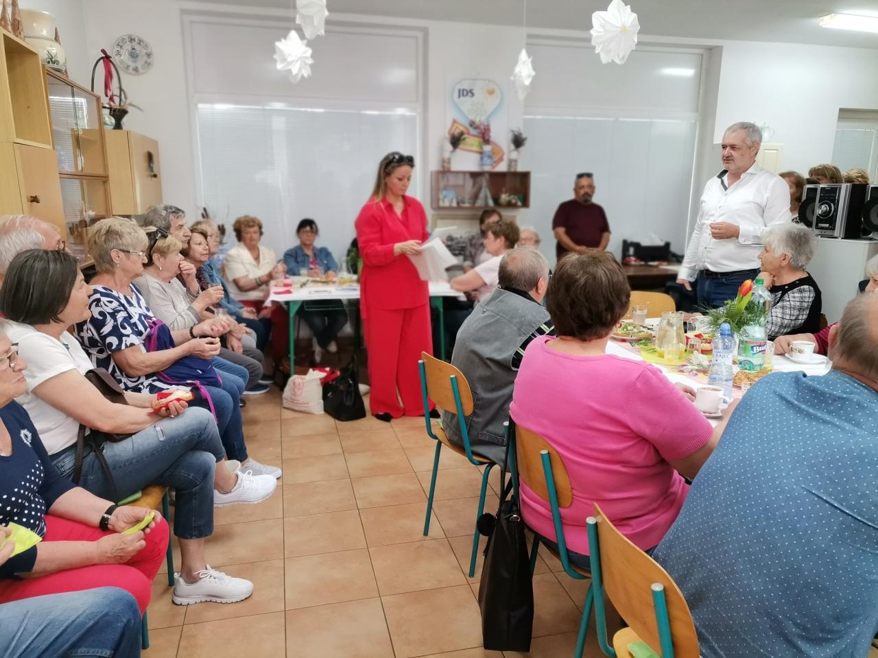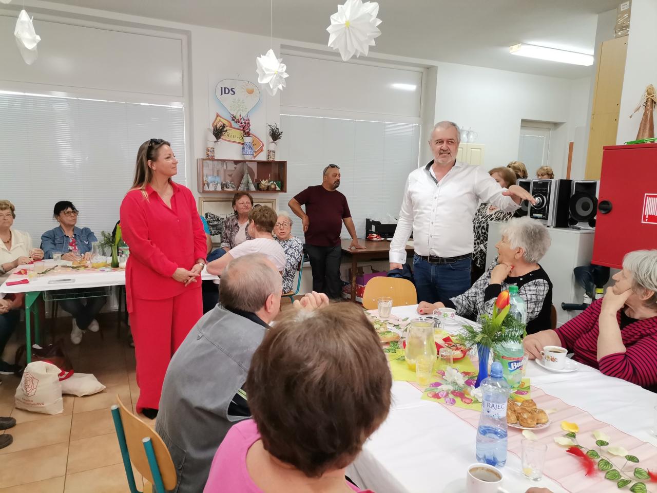 Privítali sme v našom klube na námestí v bazilikone vzácnych hostí a to: krajskú tajomníčku strany SMER Alžbetu Janičinovú, prednostu Okresného úradu Senica Ing. Vladimíra Kocourka, okresného administrátora strany SMER Ing. Antona Mošaťa, predsedu klubu strany SMER Michala Daniela, predsedu PZ pána Vladimíra Fialu a asi 20 členov JDS z mesta Trnava. Stretnutie bolo srdečné a o super atmosféru sa okrem hostí, postaral súbor Senior krásnymi piesňami, ktoré sprevádzali dve harmoniky. Diskusia sa niesla v duchu významu eurovolieb, všetky otázky boli krásne vysvetlené. Ďakujeme za návštevu a radi Vás všetkých privítame zase!