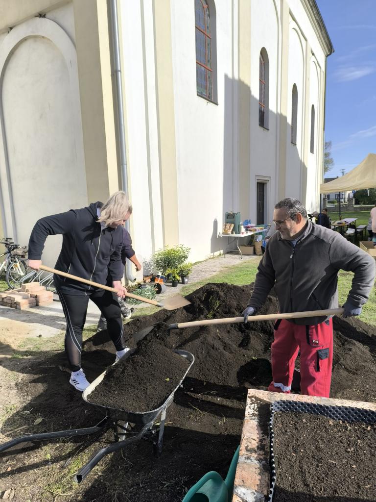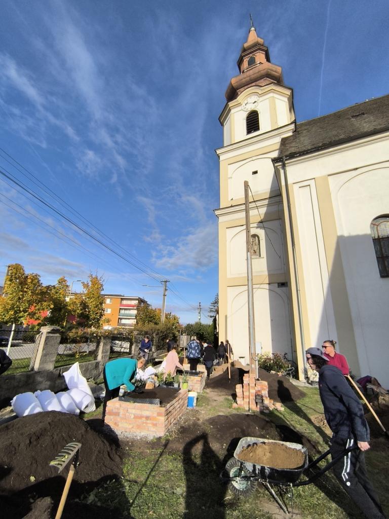 Komunitná záhrada s prvkami permakultúry pri kostole na námestí, ktorá skrášli ďalší priestor v našom meste.