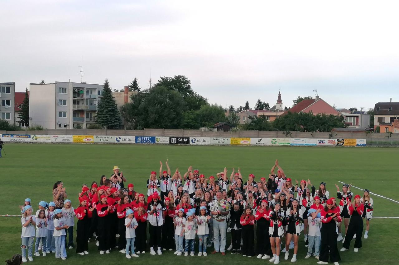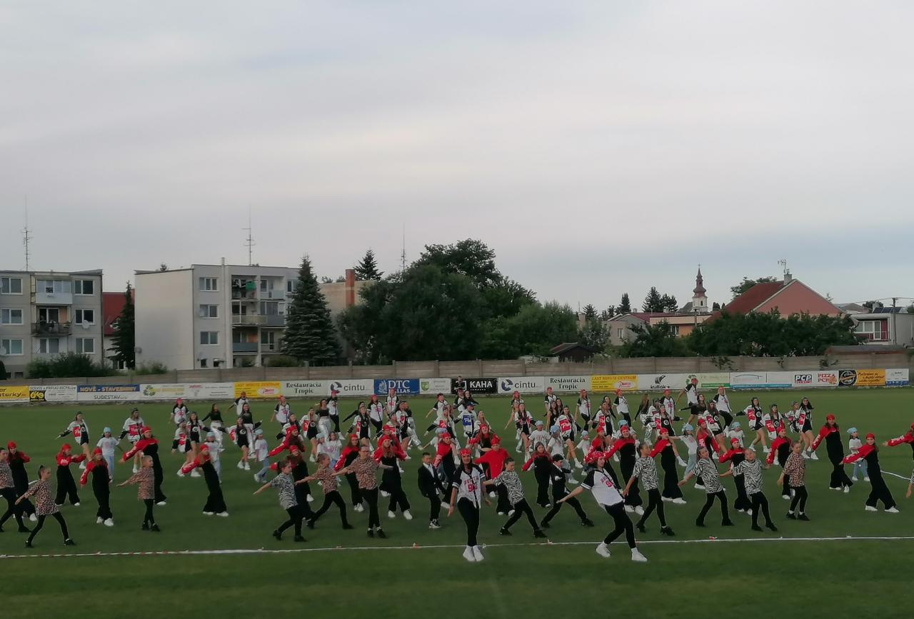 Záverečný koncert Tanečnej skupiny ŠandS popri ZUŠ Jany Kocianovej sa uskutočnil „Pod holým nebom“ na štadióne TJ Slovan Šaštín.
