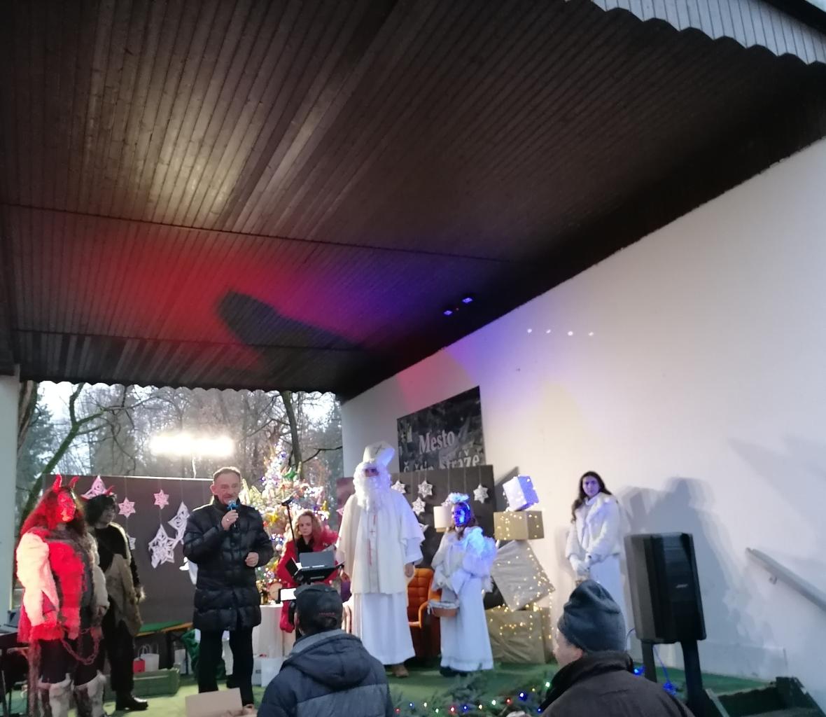 Mikuláša sme po prvýkrát privítali v kempe na Gazárke. Priviezol sa na koči aj so svojím sprievodom. Cestou sa zastavili aj v Zariadení pre seniorov, kde potešili a odmenili starkých. Po príchode do kempu ich už čakali mnohé deti, ktoré svojimi básničkami a pesničkami prišli Mikuláša potešiť. Odmenené boli sladkosťou a tiež si mohli pochutiť na horúcej čokoláde s marshmallow, či povoziť sa na koči. V priebehu programu prišli Mikulášovi anjelské sms, ktoré ho upozorňovali na to, aby nezabudol oceniť láskavé, šikovné a milé deti – Filipa Menšíka, Dominiku Holickú, Maxa Javorku, Laurinku Vajčiovú a Sofinku Vicianovú, ktorá aj prítomným po príhovore primátora krásne zaspievala. Po programe sa mohli deti vyfotografovať s Mikulášom a jeho sprievodom, neskôr aj s Olafom, Sobíkom a Annou. Ohnivá šou či kolotoče tiež potešili všetkých prítomných. Deti mohli napísať i odkaz pre Mikuláša a jedno z nich bolo po programe vylosované a odmenené darčekom. Prírodné prostredie, pekná výzdoba, dobré jedlo a dobrá muzika prispeli k tomu, že celá akcia mala peknú vianočnú atmosféru. Veríme tomu, že sa nám podarilo prostredie pekne vyzdobiť a že ste sa dobre cítili. Ďakujeme, že ste prišli a poctili nás vašou dôverou.