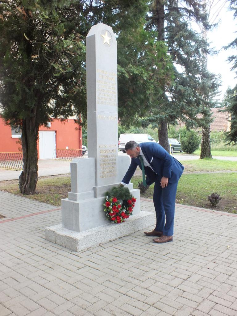 Primátor mesta Mgr. Jaroslav Suchánek pri tejto príležitosti položil k pamätníku veniec, na pamiatku zosnulých vojakov.