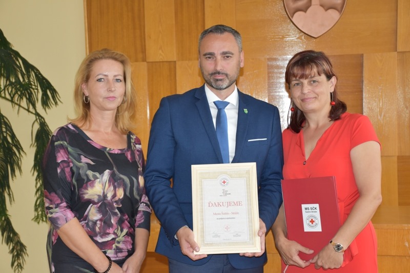 Pri príležitosti osláv storočnice červeného kríža si primátor mesta prevzal z rúk riaditeľky ÚS SČK Senica pamätný ďakovný list za spoluprácu, podporu a pomoc mesta Šaštín-Stráže miestnemu spolku SČK. Po spoločnej fotografii ocenených boli všetci prítomní - hostia, darcovia aj ich rodinní príslušníci, pozvaní na malé občerstvenie od organizátorov - MS SČK a mesta Šaštín-Stráže.